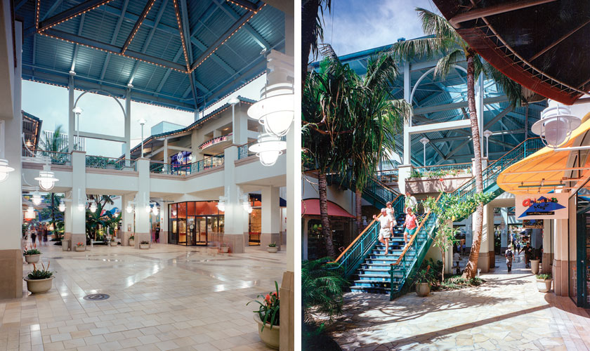 Aloha Tower Marketplace is a two level 220,000 SF specialty center located on Honolulu’s waterfront and focused around the historic Aloha Tower. The design and merchandising of the Marketplace create a uniquely festive, Hawaiian-style environment featuring a variety of shops, cultural events and entertainment, specialty food, waterside recreational activities and a market bazaar filled with kiosks and pushcarts. Restaurants and cafes surround the oceanside perimeter of the building and feature spectacular harbor views. Colorful small shops surround the outdoor plaza adjacent to Aloha Tower. A scenic upper level food court terrace overlooks the activity at Aloha Tower and the harbor beyond and doubles as boarding galleries for inter-island cruise vessels.