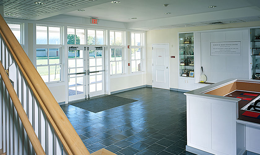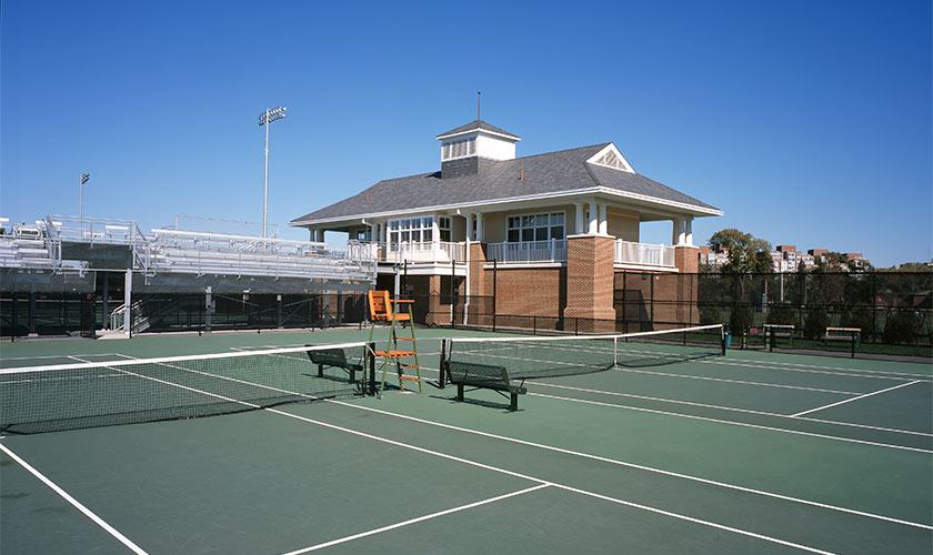 DAIQ Architects included the Beren Tennis Center as part of the Master Plan for athletic facilities at Soldiers Field. It was designed for the training and competitive play of varsity tennis teams as well as the many recreational players at Harvard. The center includes 18 outdoor tennis courts, six of which are arranged as competition courts with spectator bleachers. The Beren Pavilion is used for training and education and contains a lobby, locker rooms, coaches’ offices and an observation lounge for viewing competitions and practice matches. This facility has been used for the highest level of NCAA competition.