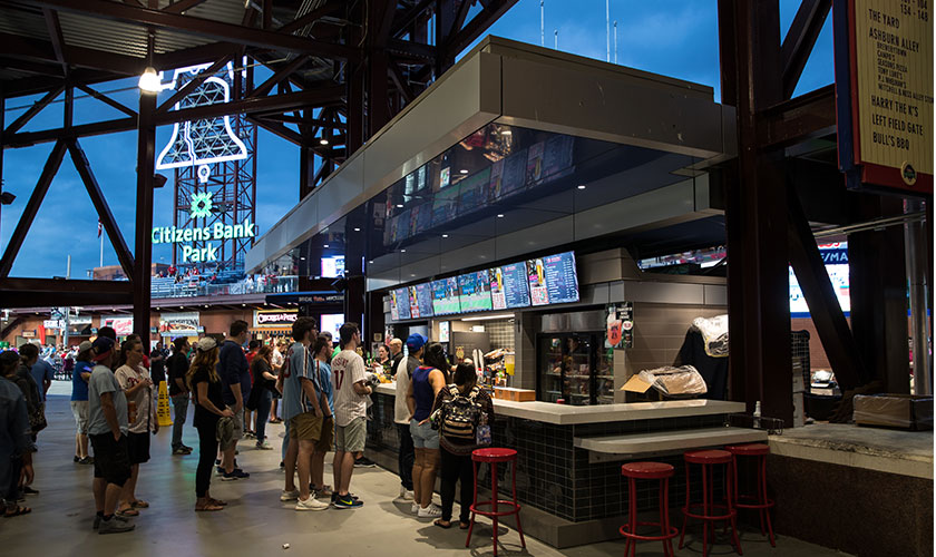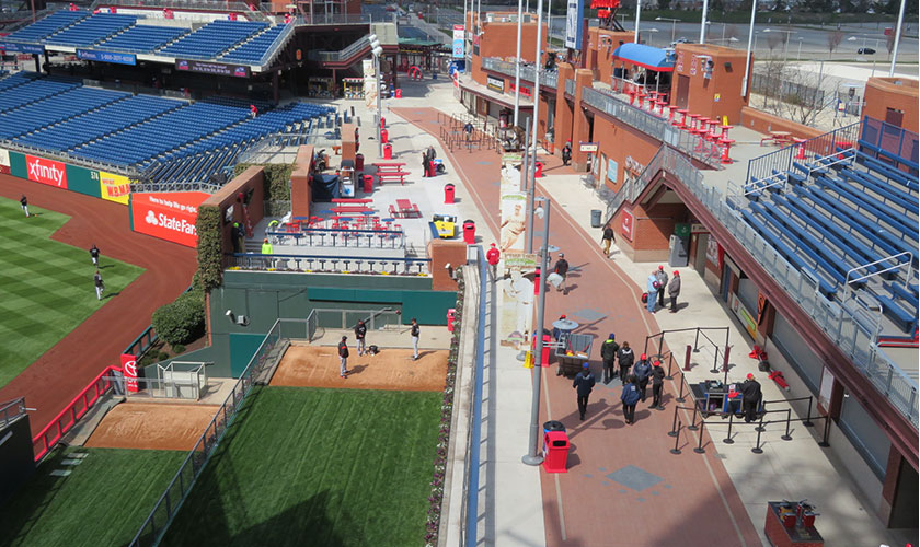 DAIQ Architects has worked with The Phillies over the past 3 years to upgrade the park and elevate the fan experience. DAIQ developed a masterplan that is to be implemented in phases. The initial phase includes two entry plazas that have been developed as a focal point and destination. The Scoreboard Entry Plaza has new plantings, seating and a relocated Hall of Fame area with oversized retired numbers and World Series trophies. Adjacent to this area are new concessions and barbecue pavilion with high top tables and enhanced views into the field. Ashburn Alley East was developed to appeal to all generations with a kid’s zone called “The Yard” that includes the largest whiffle ball field in professional baseball, a climbing wall, interactive games and an ice cream bar.