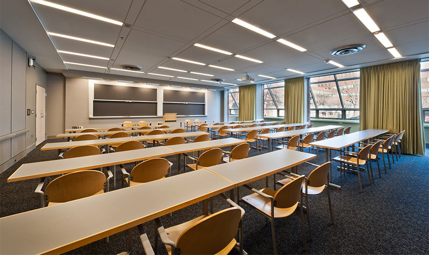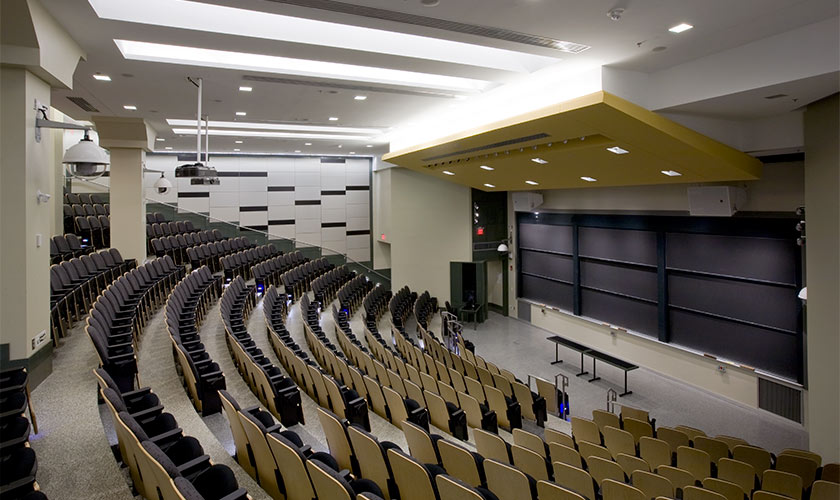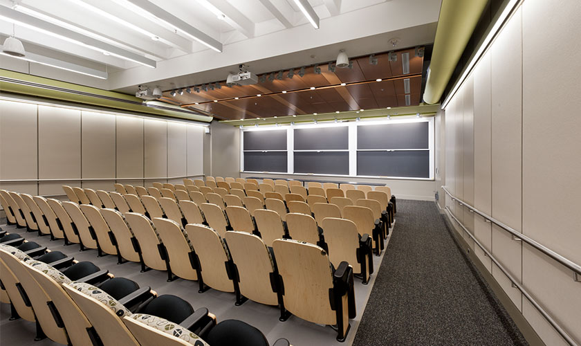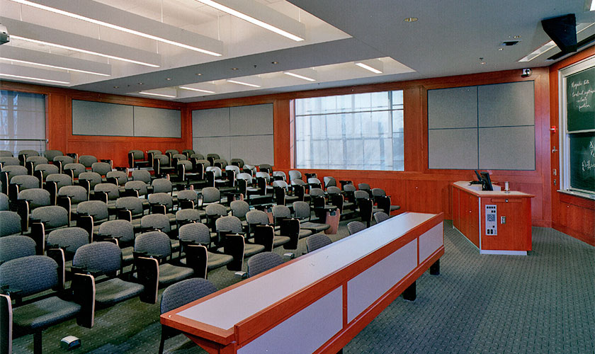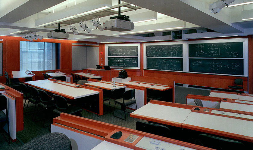D’AIQ Architects has worked with The Massachusetts Institute of Technology to update numerous classrooms, lecture halls, and laboratories to meet the changing needs of research and teaching. The Park Lecture Hall and Park Room for Innovative Education are two classrooms integrating complex audio-visual and computer display systems promoting distance learning, and new teaching concepts for small group learning of basic engineering. Huntington Hall, Lecture Room 10-250, is MIT’s most significant lecture hall. It is equipped with state of the art video recording, video projection and sound equipment. At a capacity of 425 seats it is the site of MIT’s most popular classes and its most important public events. In each of our MIT projects, DAIQ works closely with faculty and lab staff to develop designs that support instruction and research, and tailor the built environment to the technical requirements for evolving lab equipment, systems and teaching methods.