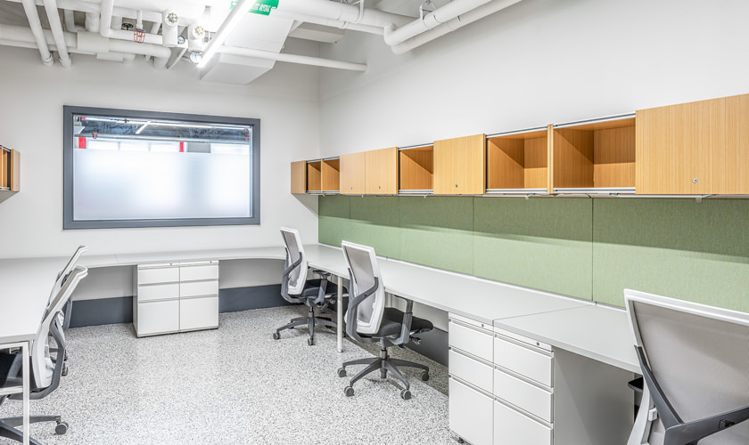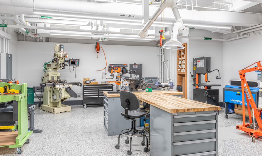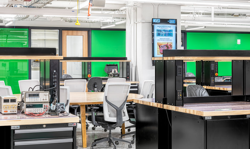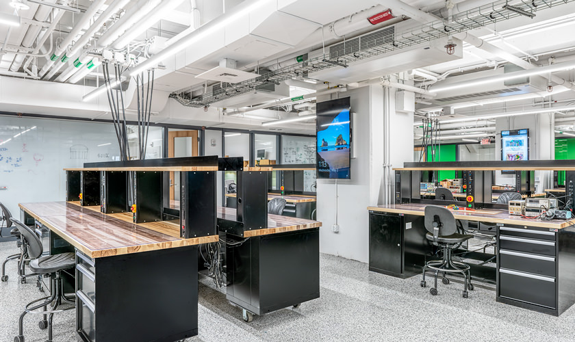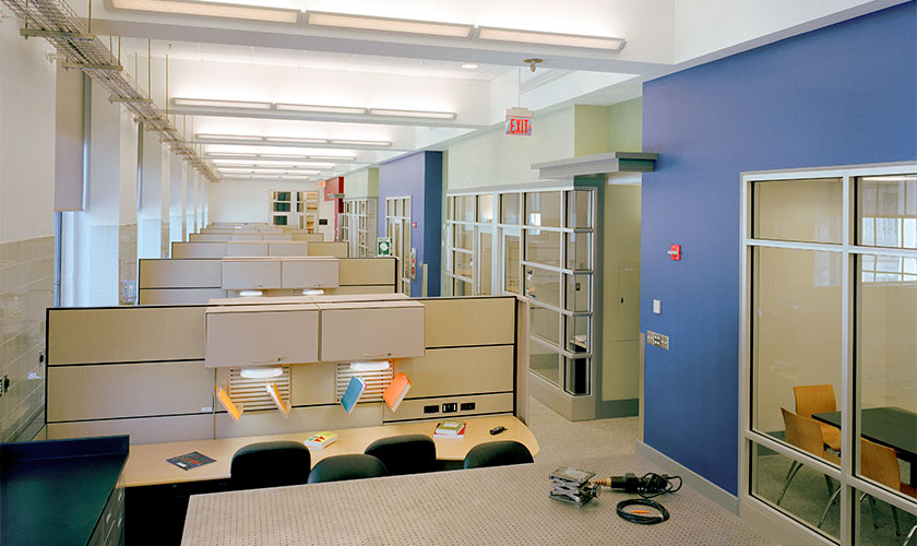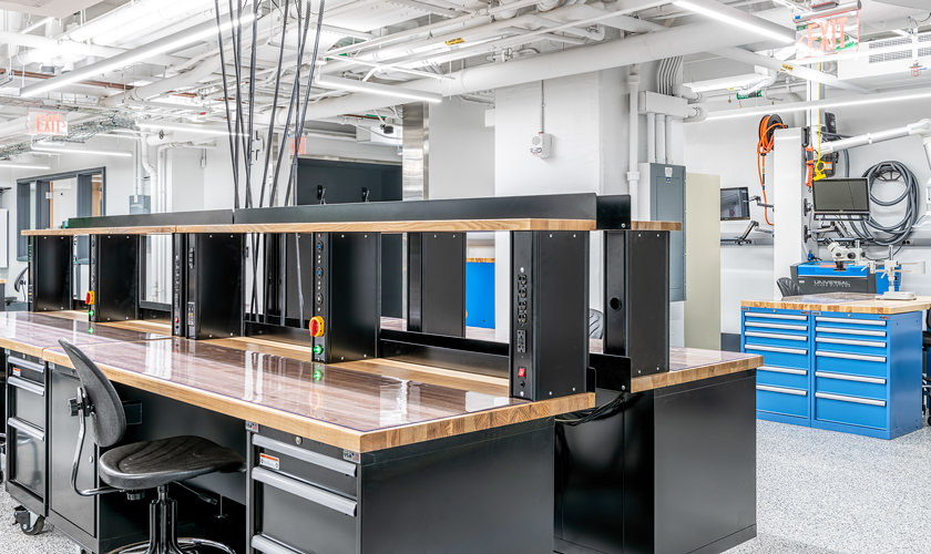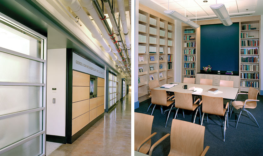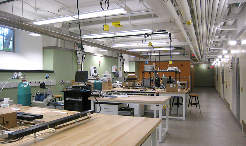During the past 15 years, DAIQ has completed several renovation projects within the main building complex at the Massachusetts Institute of Technology. In each case the design team faced the challenge of integrating high technology systems and new teaching methods within a landmark building designed for early 20th century technology and pedagogy. The Pappalardo Laboratories for Undergraduate Education (1995) are a 20,000 sf complex of labs, classrooms, workshops, and seminar facilities to teach first principles in Mechanical Engineering. Studies bridge the gap between the theoretical and the practical and include MIT’s famous 2-007 design course and competition immortalized on NOVA as the “Battle of the Robots.” Subsequent projects include the Brit and Alex D’Arbeloff Laboratory for Information Systems and Technology, the Park Lecture Hall and Park Room for Innovative Education, the George and Daphne Hatsopoulos Microfluids Laboratory and Rohsenow Kendall Lab.