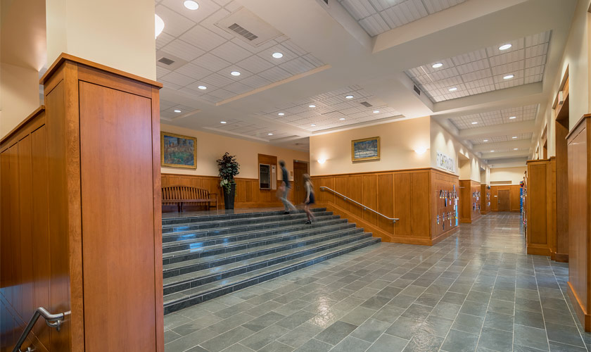 The library addition,in 2007, adjacent to the original building on the campus and includes bookstacks, study carrels, seminar rooms, quiet study hall, classrooms and faculty offices. A skylit double-height stair hall links the new library to the existing building. Construction work for a new Wellness Center started in late 2014. The project is expected to be completed in the Spring of 2016.